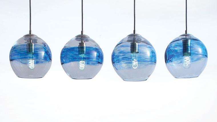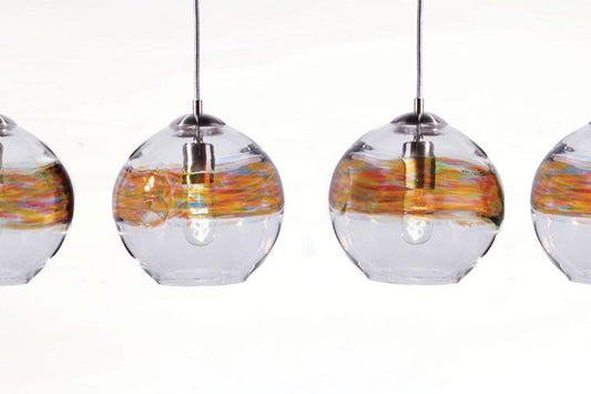 Colorful bands of glass resemble the tranquil qualities of the Aurora Borealis. Our artisans use molten beads to simulate the color palette of a tropical ocean or a vibrant sunset. The perfect compliment to a calming and luxurious environment.