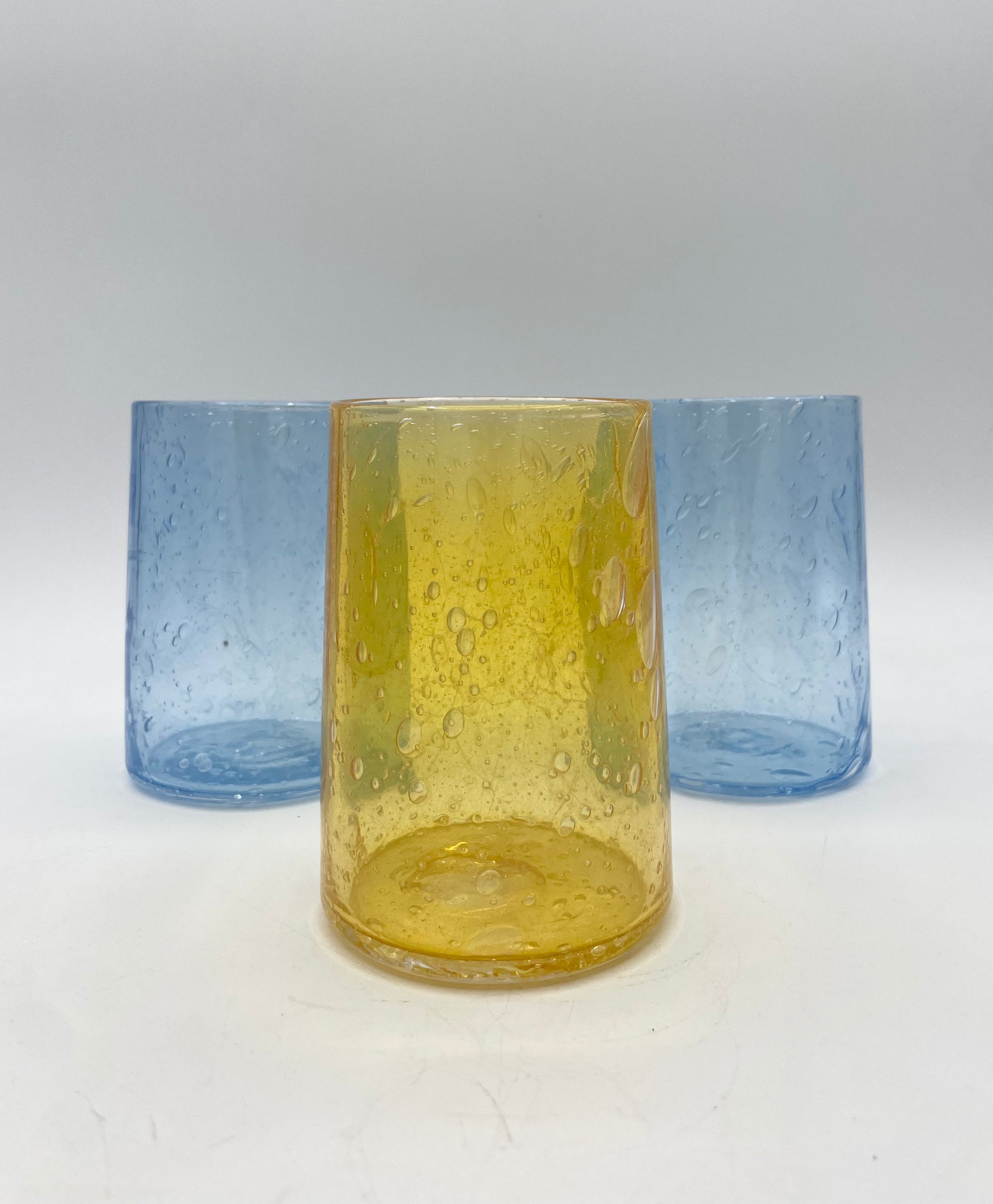 These artisan juice glasses combine old-world charm with modern simplicity, making them perfect for serving juice, water, cocktails, or wine. The textured crackled glass sparkles in the light, adding warmth and artistry to your everyday table or special gatherings.