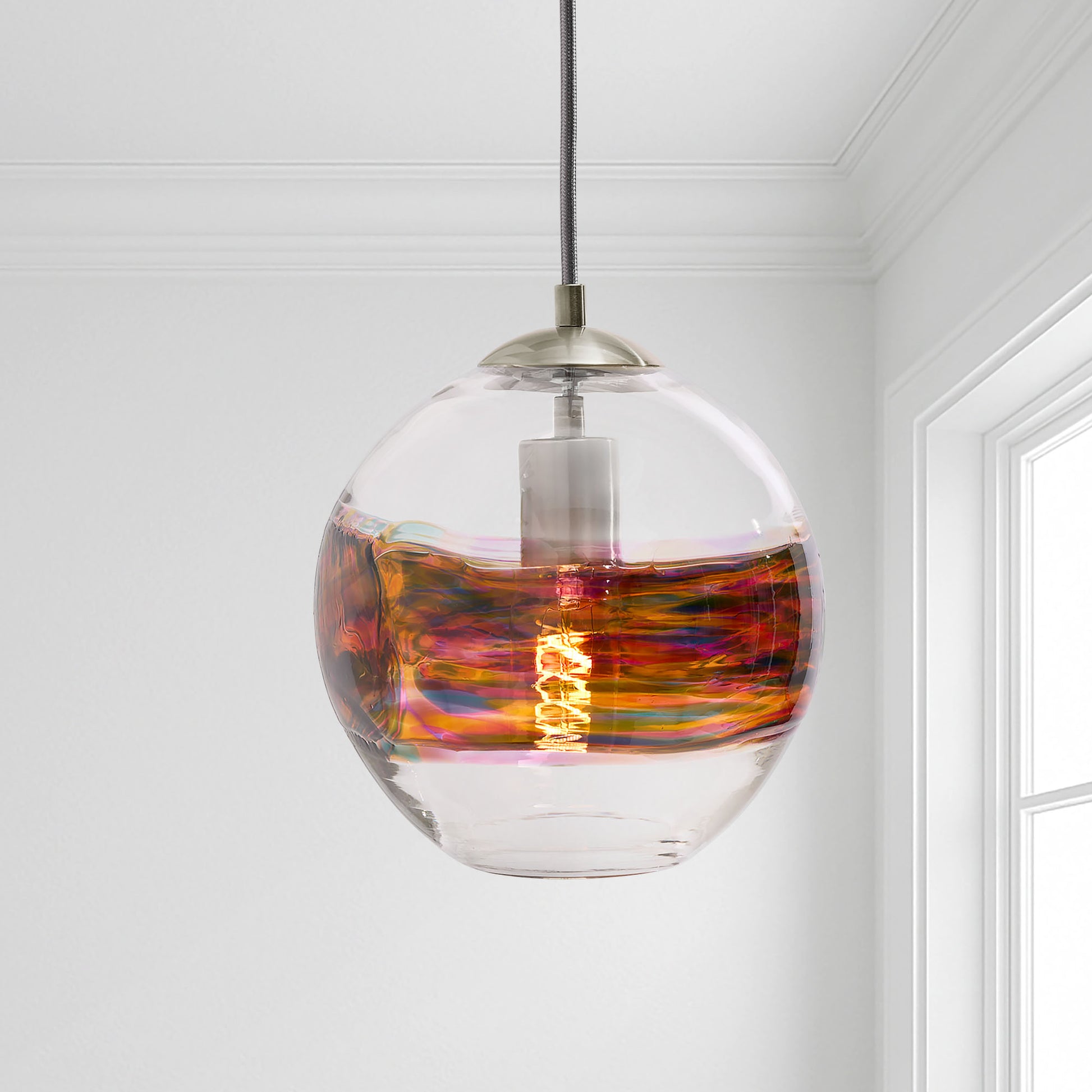 Design: Signature Aurora style featuring a band of molten glass color stretched around the body of the pendant while hot.