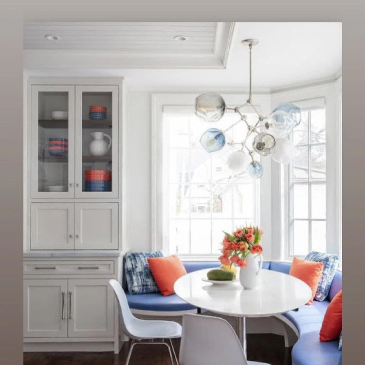 With fully customizable finishes, glass colors, and drop height, this chandelier is designed to fit seamlessly into your space - whether your style leans modern, transitional, or classic. Each fixture is crafted by hand in Rhode Island by our team of skilled artisans, making it a true work of functional art.