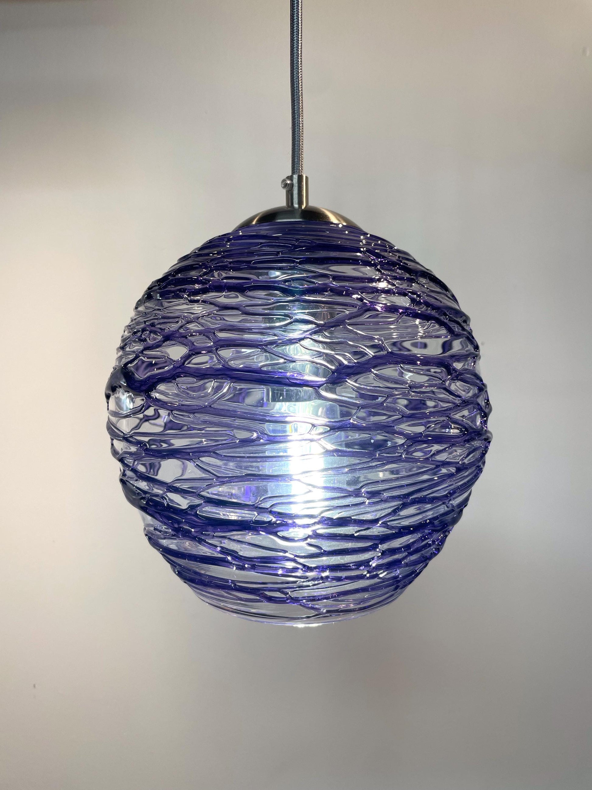 In this iteration of our Stella diffuser, the clear shade is wrapped in a trail of purple glass, creating a beautiful texture and light effect.